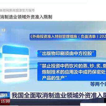 我囯全面取消“禁止外资投资中药饮片的蒸、炒、炙、煅等炮制技术的应用及中成药保密处方产品的生产”。